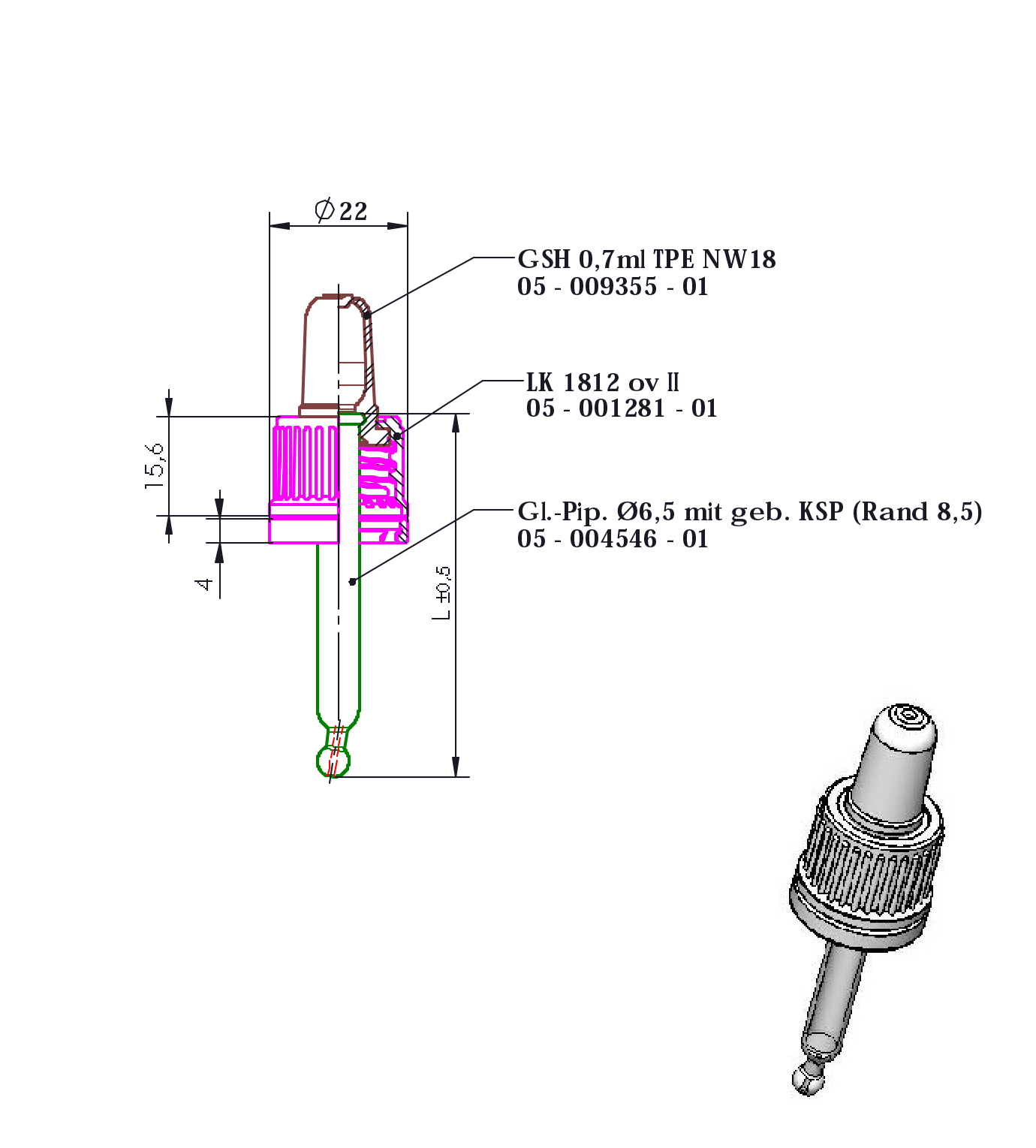 Screw caps, pipette droppers, rubber stoppers